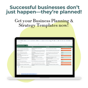 The Business Planning & Strategy Templates provide structured tools to help entrepreneurs, small business owners, and content creators set goals, evaluate opportunities, and develop actionable strategies for success. Whether you're launching a new venture or refining your existing business, these templates will guide you through every step of the planning process.
