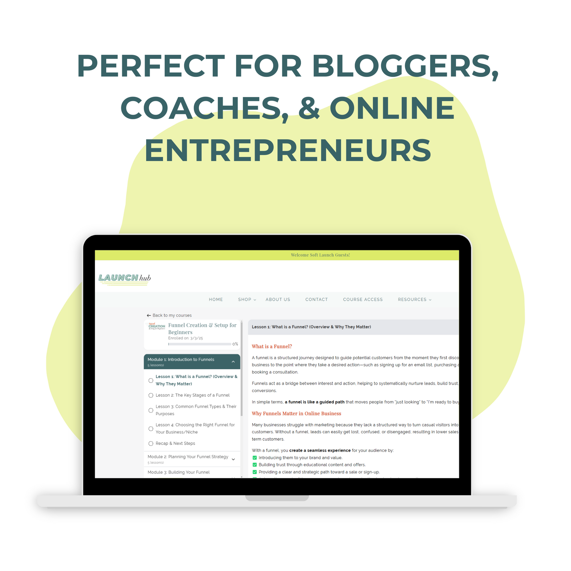 The Funnel Creation & Setup for Beginners course was perfect for me! I'm at the start of my business journey, so while I've heard many of these terms ("funnel," "opt-in," "lead magnet") before, most resources assume a level of familiarity I just don't have yet. This course clearly laid out what each term means and - more importantly - how I can use it and optimize it in my business. One thing I'd like to see is what a good target percentage is for each of the metrics. For example, a 5% rate was discussed as being too low, but there wasn't any information on what a "good" percentage is for each of the metrics. Other than that, all of the information was timely, easy to follow, and incredibly useful. Thanks, Launch Hub, for putting together such a great resource!
