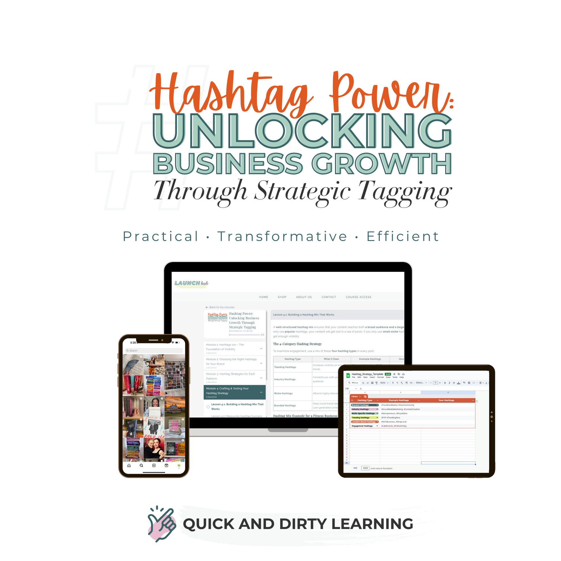 Hashtag Power is a step-by-step course designed to help entrepreneurs, small business owners, and content creators master the art of strategic hashtag use across platforms like Instagram, TikTok, Twitter (X), and LinkedIn.